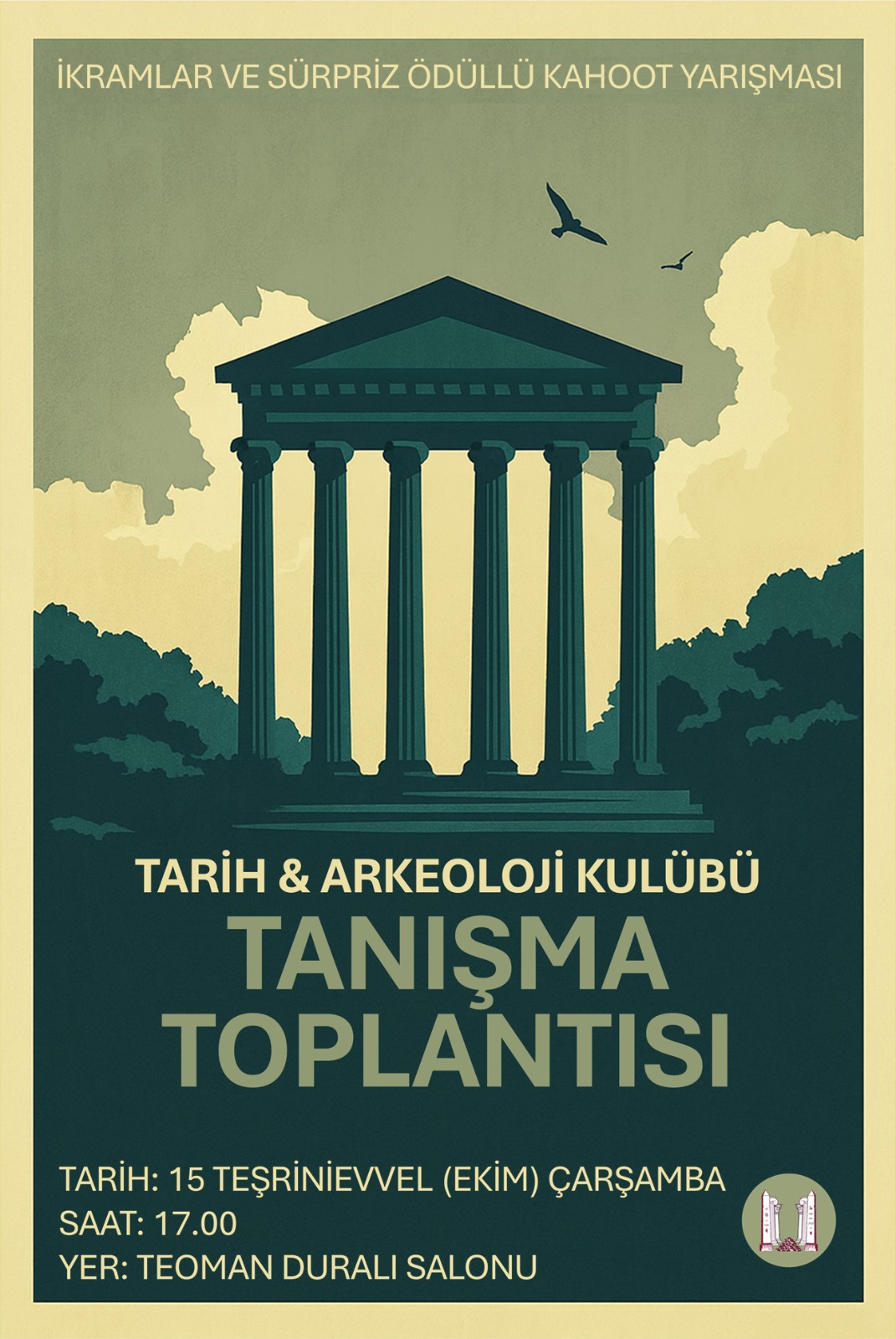 Kulüp: Tarih ve Arkeoloji Kulübü - Başlangıç Tarihi: 15 Ekim 2025 17:00 - Bitiş Tarihi: 15 Ekim 2025 18:30