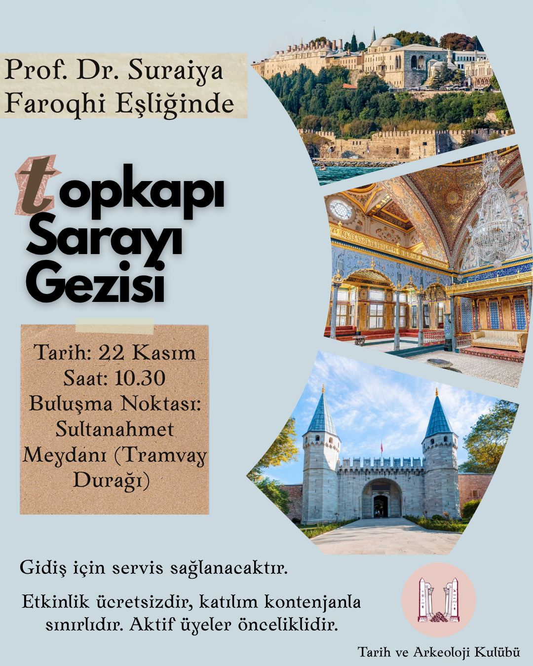 Alanında uzman bir hocamız eşliğinde tarihi ve kültürel mirasımız olan Topkapı Sarayını gezmek.