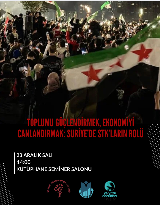 Suriye’nin özgürlüğe kavuşmasının yıl dönümü vesilesiyle gerçekleştirilecek bu programda; Suriye’nin yeniden kalkınma sürecinde önemli bir yere sahip olan sivil toplum kuruluşlarının sahadaki faaliyetleri, karşılaştıkları zorluklar ve toplumsal iyileşmeye katkıları ele alınacaktır. Etkinlik kapsamında, Yeryüzü Çocukları Derneği’nden yetkili bir isim ile bölgeyi yakından tanıyan Suriyeli kardeşlerimizin tecrübeleri ve değerlendirmeleri dinleyicilerle paylaşılacaktır.