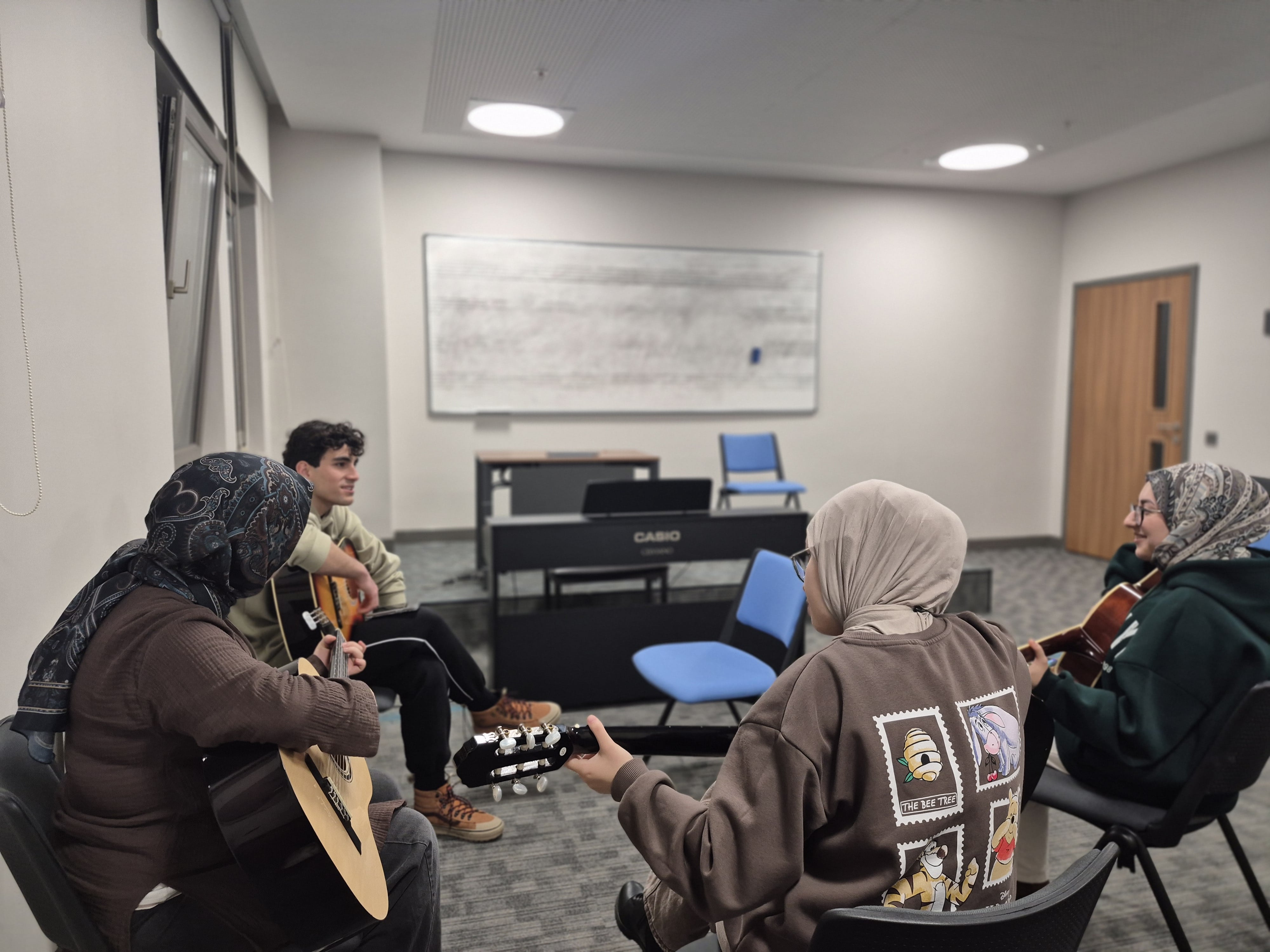 Etkinlikte, klasik gitarın tarihsel gelişimi, temel akor yapıları ve doğru çalım teknikleri üzerine hem teorik hem de uygulamalı bir eğitim gerçekleştirildi. Katılımcılar, parmak pozisyonlarından ritim duygusuna kadar enstrümanın temel prensiplerini deneyimleyerek müziğe daha derin bir bakış kazandı.Bu kurs sayesinde öğrenciler, yalnızca nota okumayı değil, aynı zamanda her tınıya duygu katmanın sanatsal yönünü de keşfederek kişisel gelişimlerine melodik bir boyut ekledi.