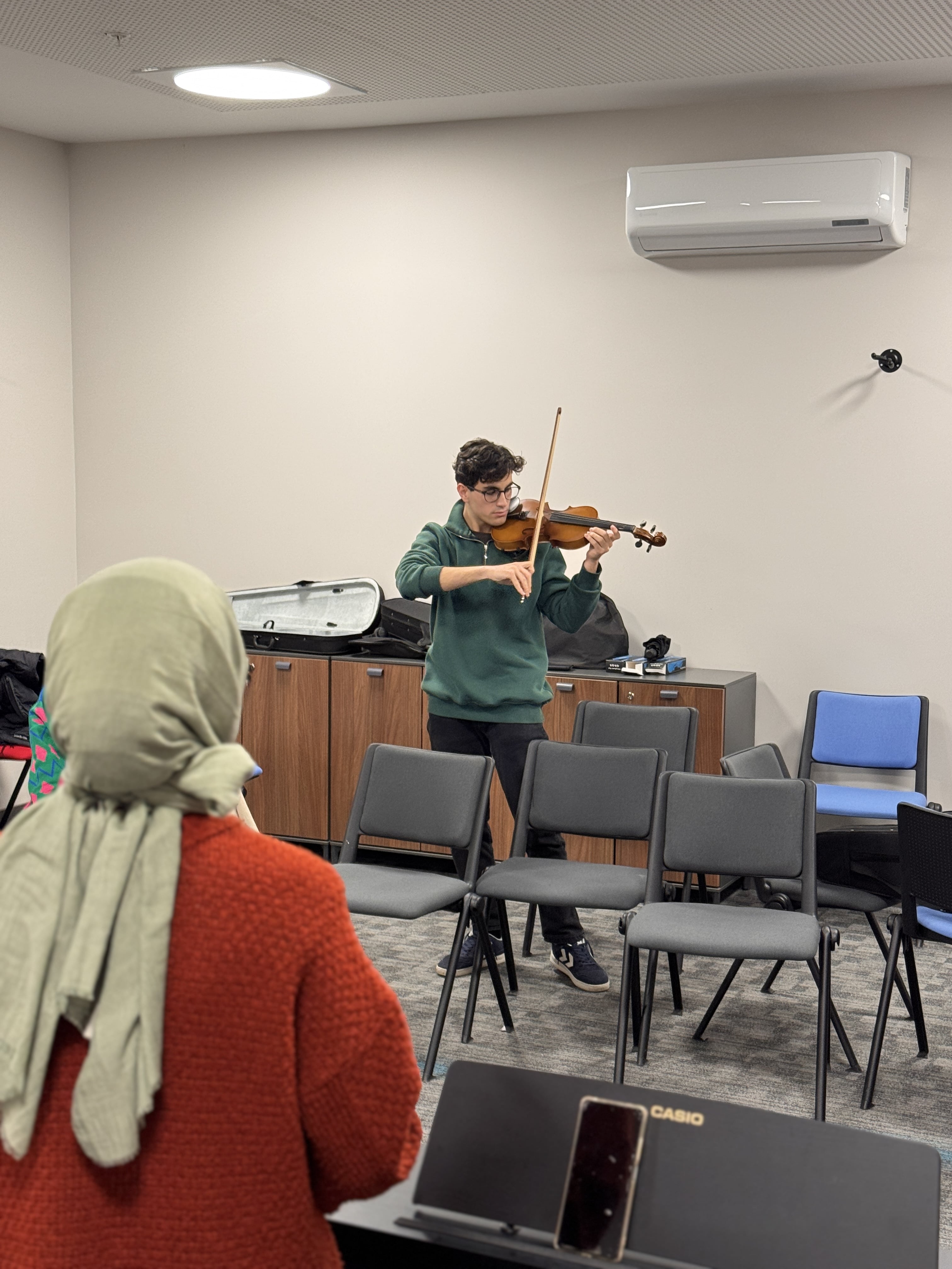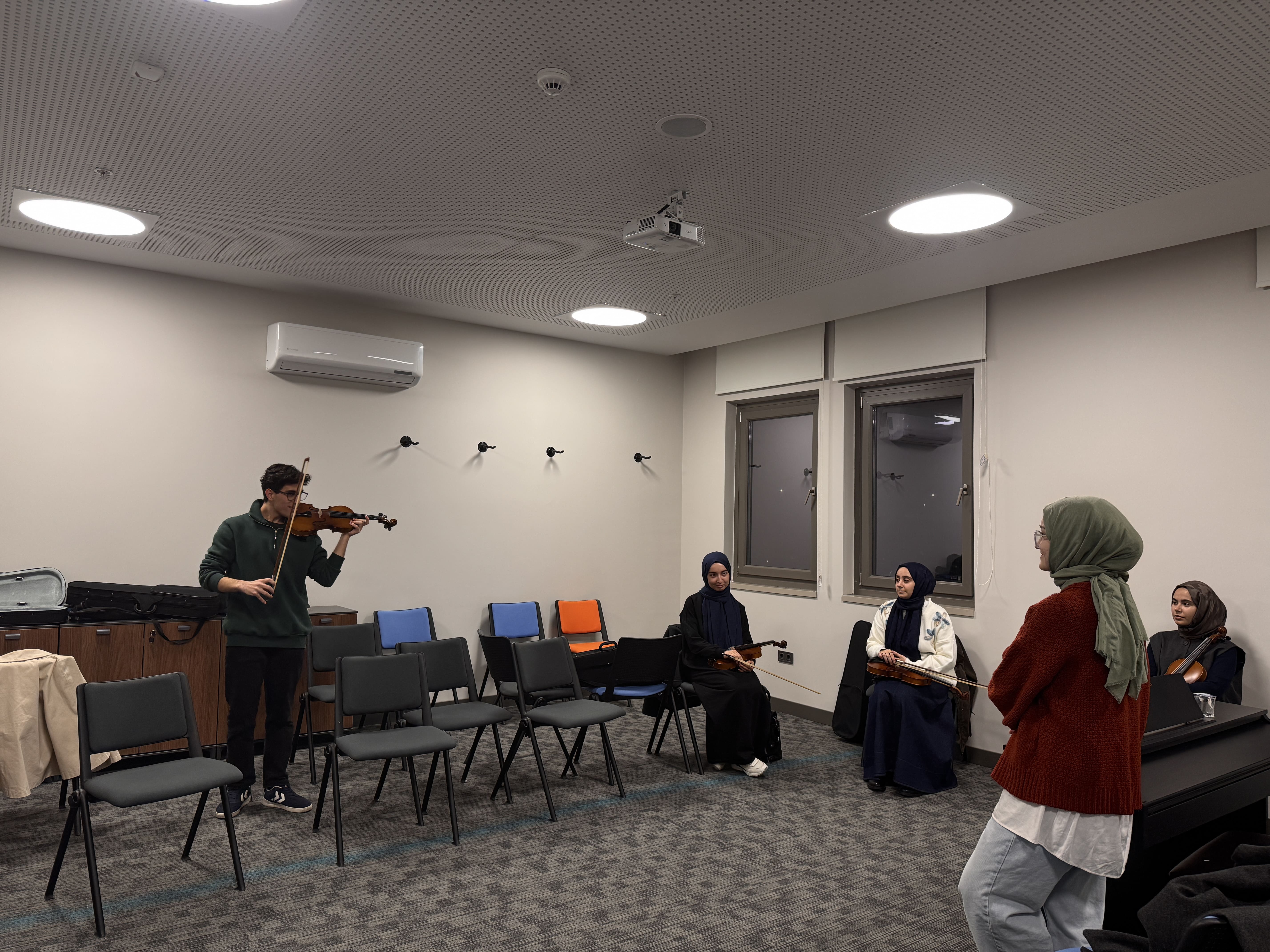 SKS Merkezi Etkinliği olarak düzenlenen kursta, keman çalmanın temel teknikleri, nota bilgisi ve doğru enstrüman tutuşu gibi konular ele alındı. Üniversite, bu kurslarla öğrencilerin akademik hayatın stresinden uzaklaşarak sanatsal becerilerini geliştirme imkanı bulmasını sağlamaktadır.