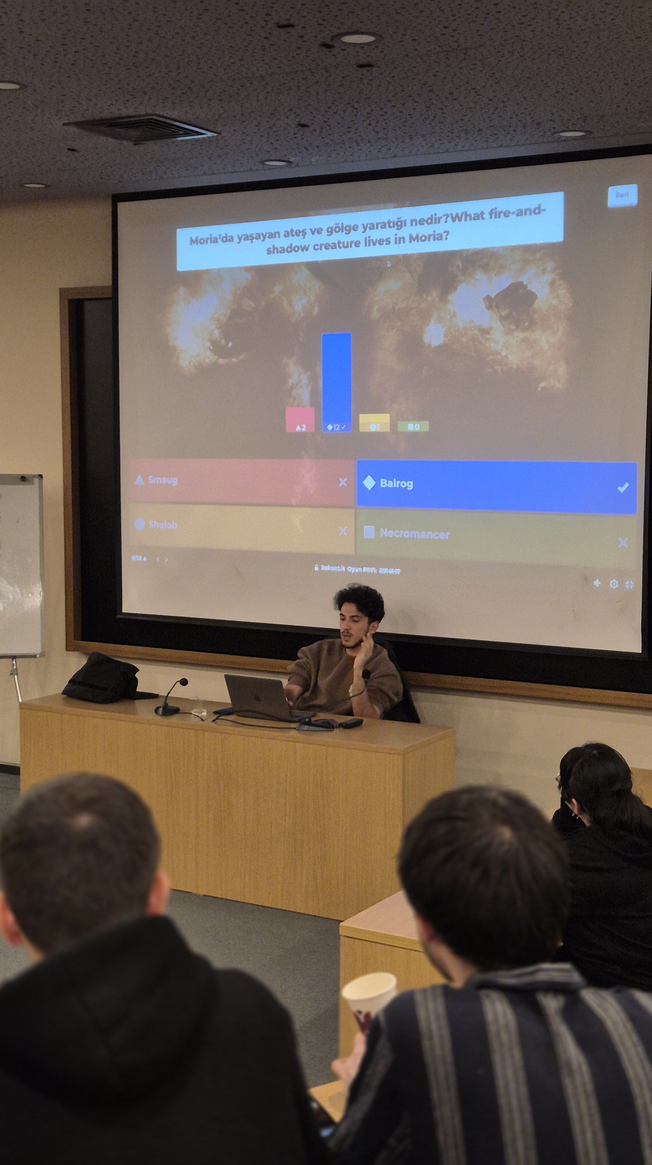 Katılımcılar hem Orta Dünya bilgilerini sınama hem de çeşitli oyunlarla eğlenceli bir atmosferde vakit geçirme fırsatı buldu. Bu özel gece, öğrencilerin yoğun akademik tempodan uzaklaşıp eğlence ve dayanışma dolu bir deneyim yaşamalarını sağladı.
