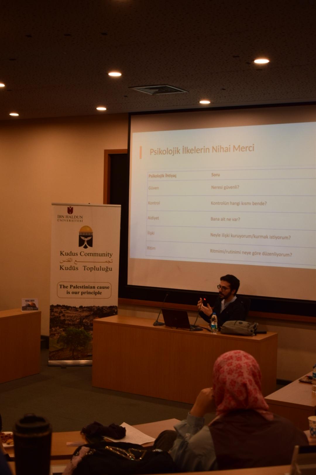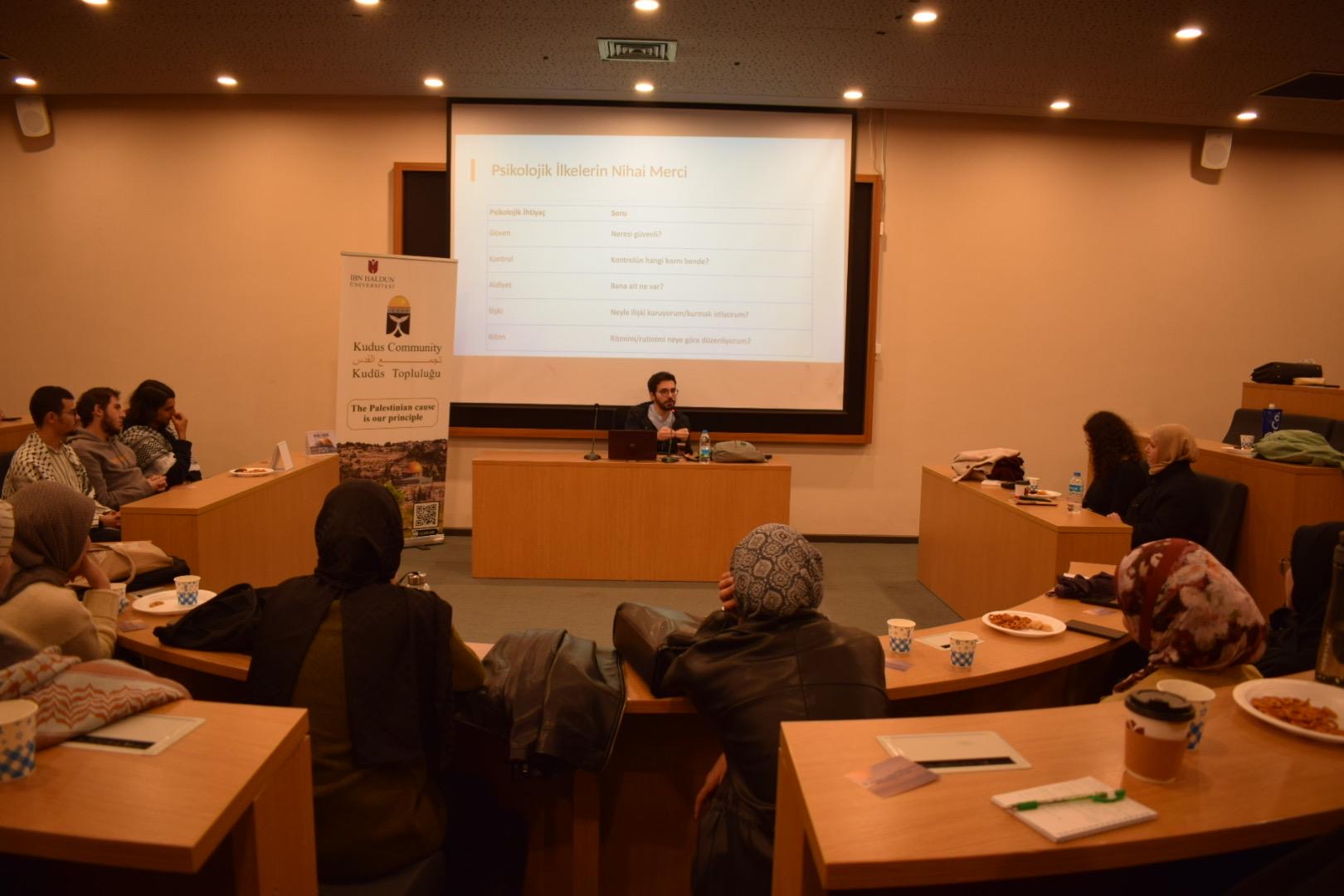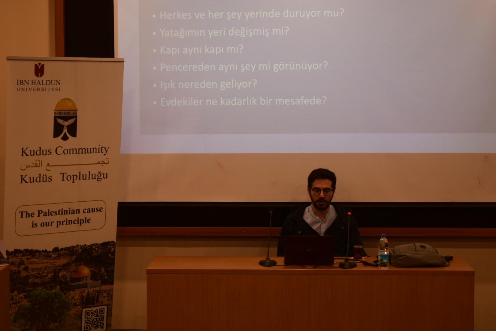 "İbn Haldun Üniversitesi Psikoloji Kulübü, Kudüs Topluluğu iş birliğiyle 11 Kasım 2025 tarihinde düzenlenen “Mekan ve İnsan: Travma Sonrası Çocuk ve Çevre Etkileşimi” etkinliğinde, işgal altındaki Filistin’de yaşayan çocukların deneyimlerini ve bu deneyimlerin çevreleriyle olan ilişkilerini ele aldı. Etkinlik, öğrencilerin yalnızca teorik bilgi edinmelerini değil, aynı zamanda empati ve farkındalık geliştirmelerini hedefleyen interaktif bir formatta gerçekleştirildi.