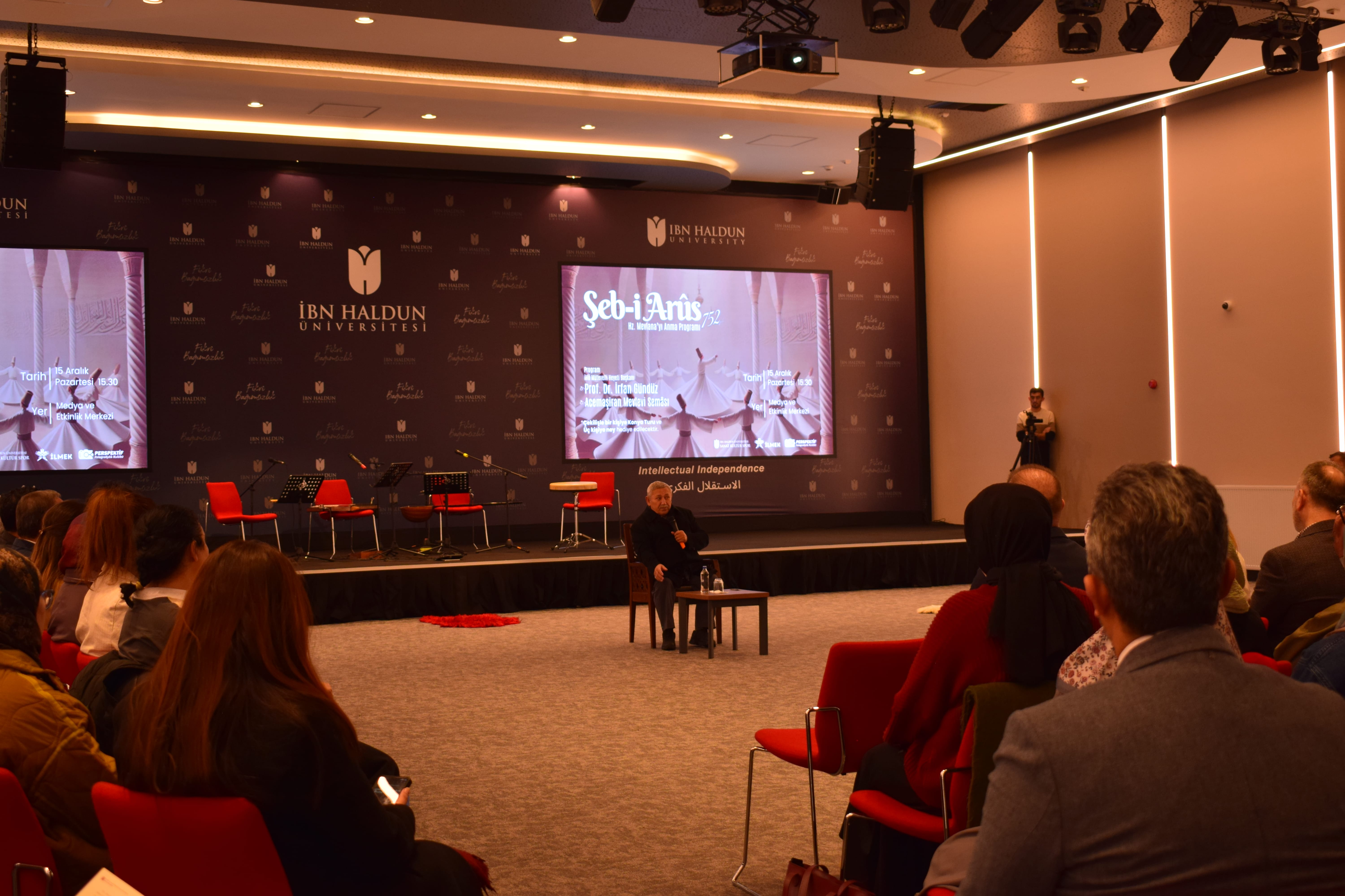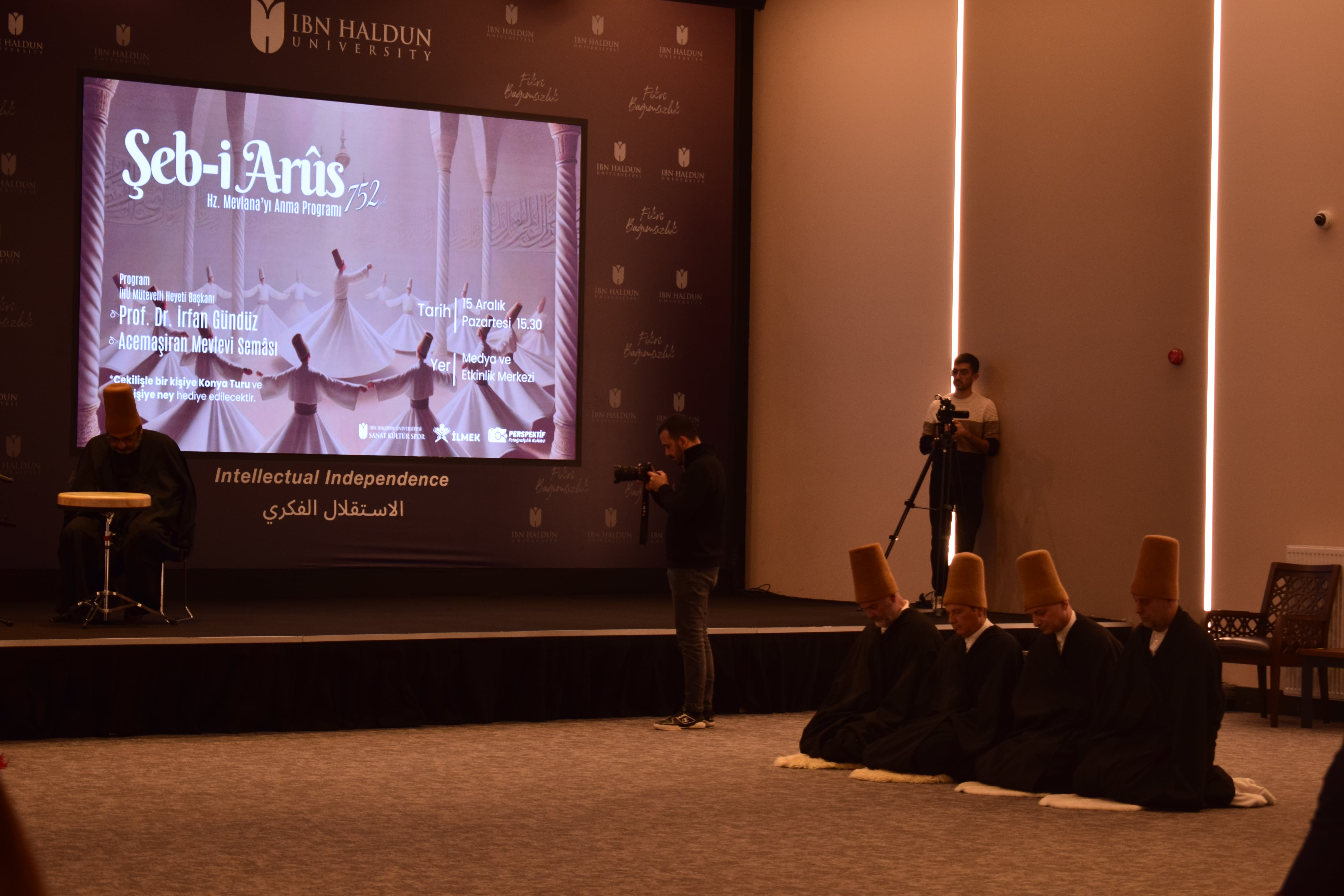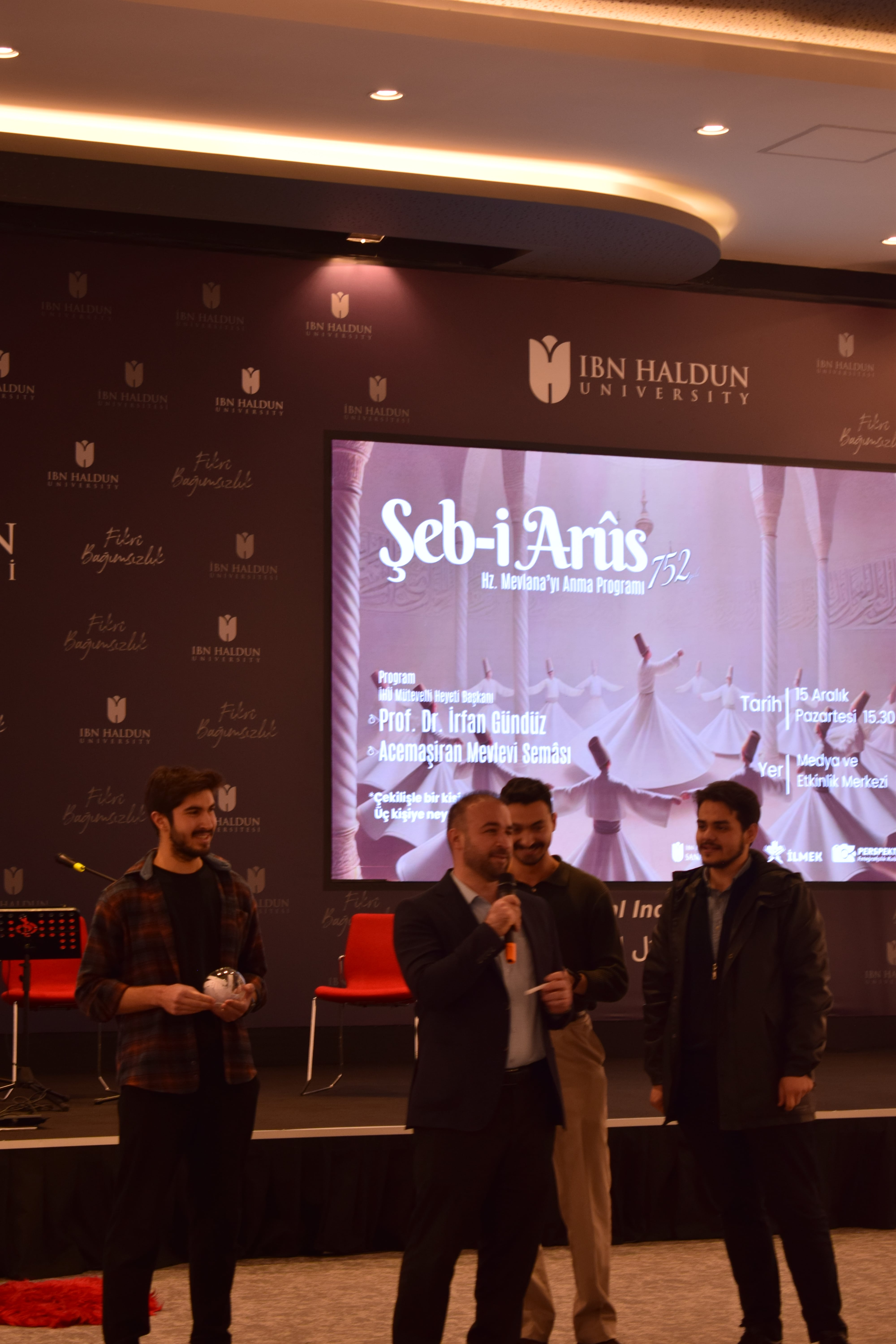 Program kapsamında Prof. Dr. İrfan Gündüz’ün gerçekleştirdiği konuşmada, Mevlânâ’nın hayatı, tasavvuf anlayışı ve günümüze uzanan evrensel mesajları ele alındı. Konuşmanın ardından sahnelenen Acemaşiran Mevlevi Sema Gösterisi, izleyicilere derin bir manevi tecrübe yaşatarak gecenin ruhunu tamamladı. Etkinlik süresince katılımcılar, Mevlevi geleneğinin estetik ve ruhani yönlerini yakından tanıma fırsatı buldu. Programın sonunda gerçekleştirilen çekilişte bir katılımcıya Konya Turu, üç katılımcıya ise ney enstrümanı hediye edilerek geceye ayrı bir anlam katıldı. Şeb-i Arûs programı, üniversite topluluğu içinde kültürel ve manevi farkındalığı artırırken, öğrencilerin tasavvuf geleneğiyle bağ kurmalarına da katkı sağladı.