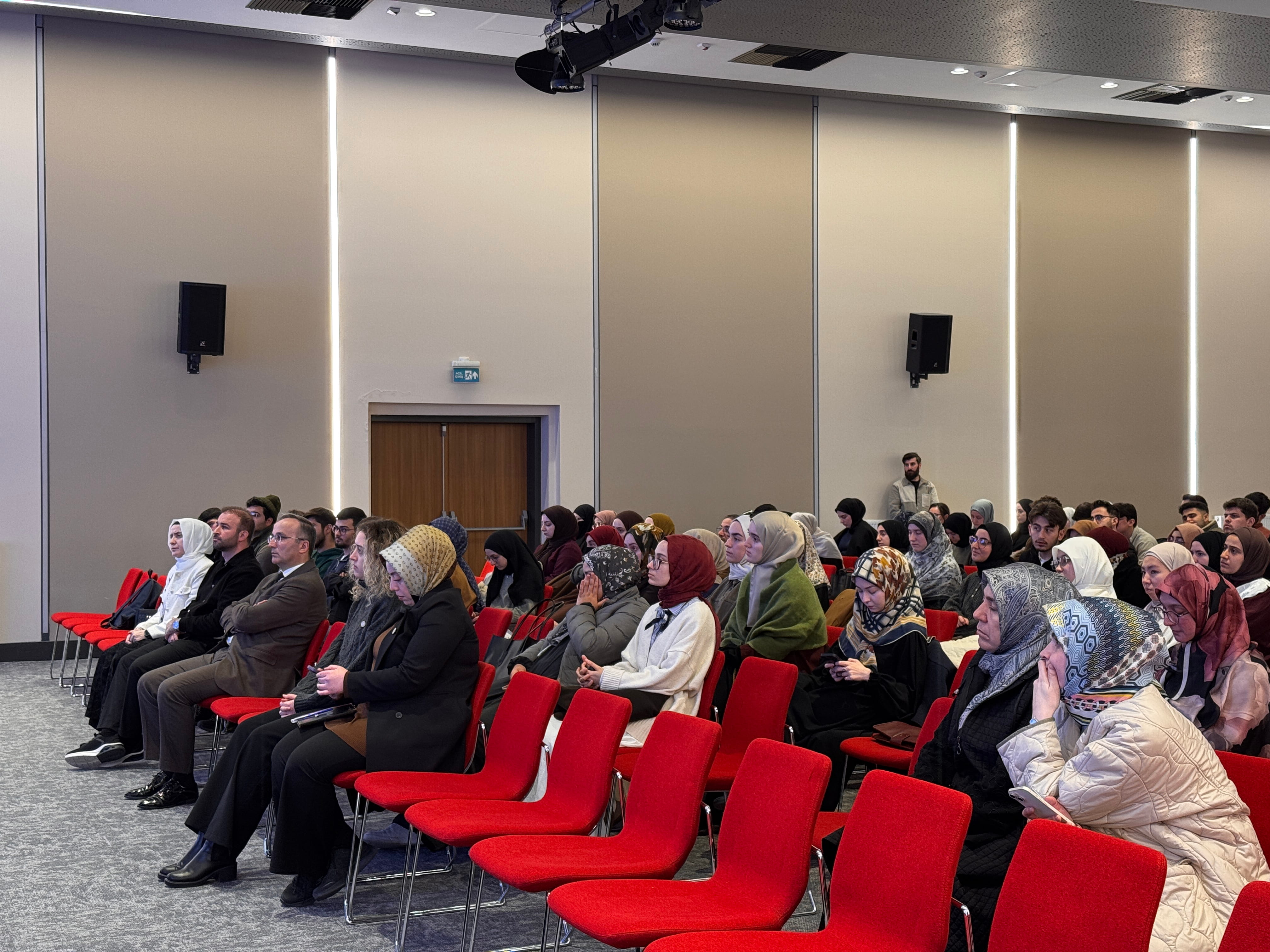 Sanat, Kültür ve Spor Daire Başkanlığı tarafından düzenlenen “Dönüşümsel Liderlikte Rol Model: Hz. Muhammed” programı, 24 Şubat 2026 Salı günü öğrencilerin katılımıyla gerçekleştirildi. Konferansta Hz. Muhammed’in kültürel inşa ve çevre bilinci eksenindeki örnekliği ele alınırken, ana konuşmacı Serdar Demirel katılımcılarla değer odaklı liderlik anlayışına dair önemli paylaşımlarda bulundu. Program sonunda katılımcılara hatıra rozet takdim edilirken, yapılan çekilişle bir öğrenciye Umre ziyareti hediye edildi.