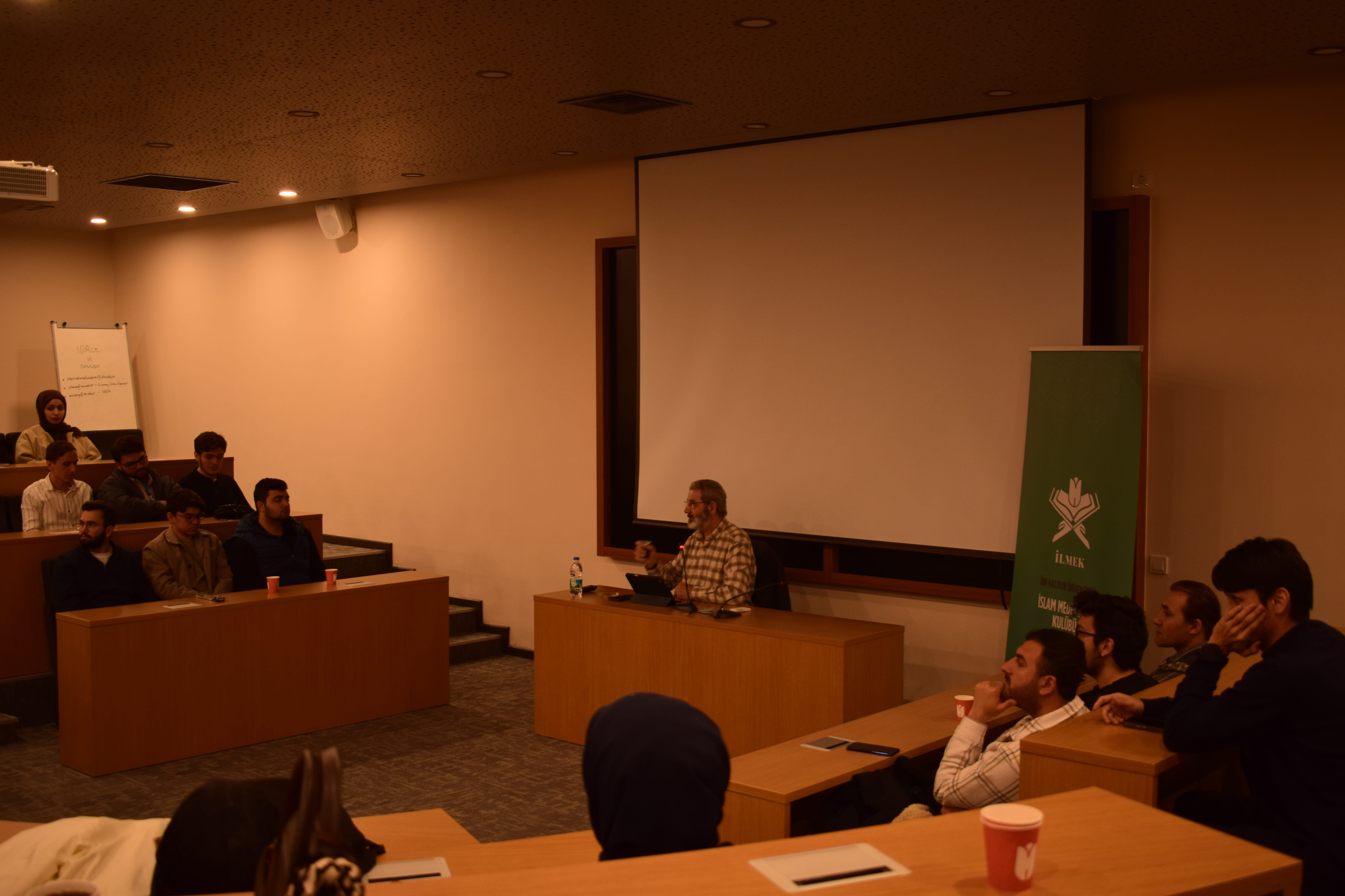 Edebiyat Kulübü, Felsefe Kulübü ve İslam Medeniyeti Kulübü iş birliğinde 4 Mart 2026 tarihinde düzenlenen “Ramazan Sohbetleri: İlme Niçin İhtiyacımız Var?” başlıklı konferans, öğrencilerin yoğun ilgisiyle gerçekleştirildi. Ramazan ayının düşünce ve tefekkür iklimine katkı sunmayı amaçlayan programda, ilmin insan hayatındaki yeri ve önemi farklı perspektiflerden ele alındı. Konferansta, bireyin kendini geliştirmesi, toplumların ilerlemesi ve medeniyetlerin inşasında ilmin oynadığı temel rol üzerinde duruldu. Katılımcılar, ilmin yalnızca akademik bir birikim değil; aynı zamanda insanın hakikati arama yolculuğunun önemli bir parçası olduğunu vurgulayan değerlendirmeleri dinleme fırsatı buldu. Program, soru-cevap bölümüyle interaktif bir şekilde devam ederek öğrencilerin konuya dair düşüncelerini paylaşmalarına da imkân tanıdı. Ramazan Sohbetleri kapsamında düzenlenen bu konferans, öğrencilerin düşünsel ufkunu genişleten ve ilmin değerini yeniden hatırlatan anlamlı bir buluşma olarak tamamlandı.