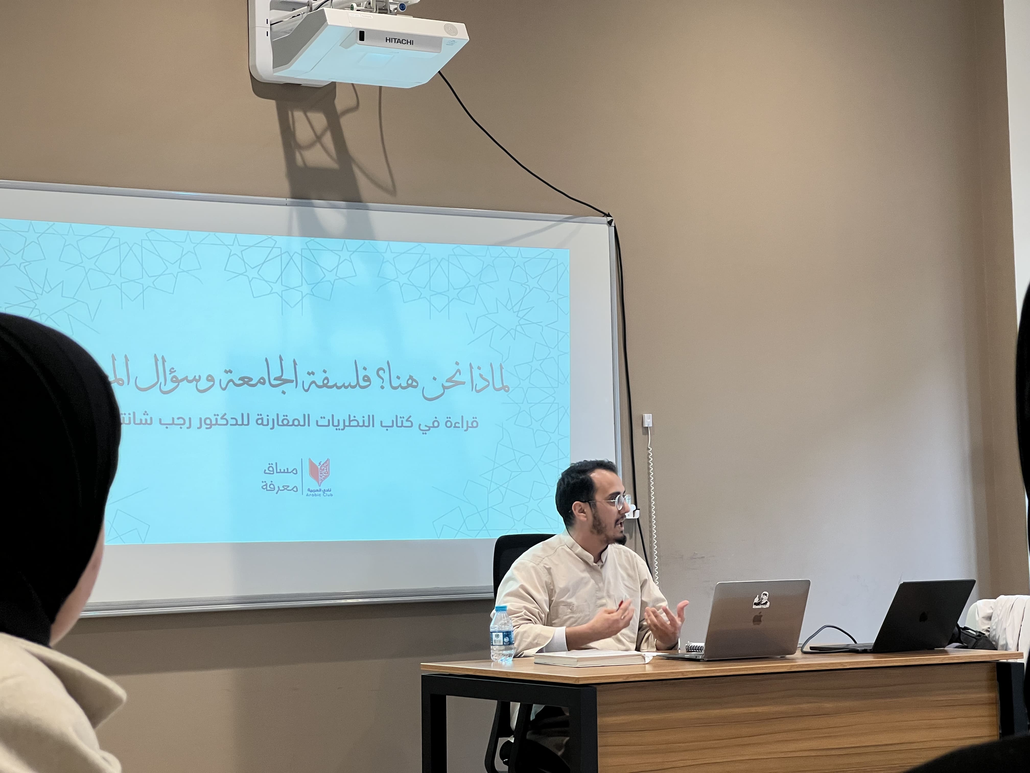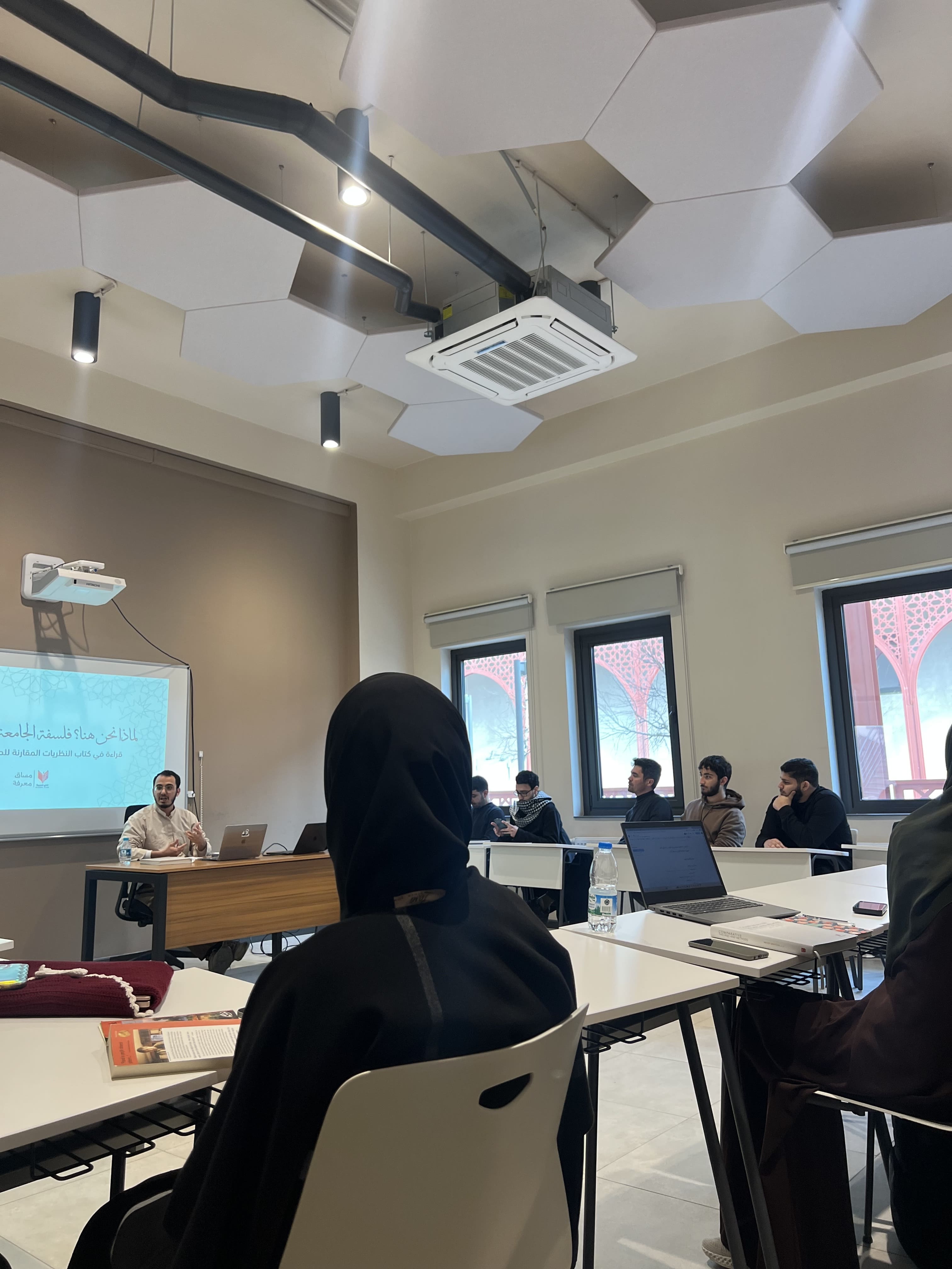İbn Haldun Üniversitesi Arapça Kulübü tarafından düzenlenen “Ma‘rifah” programının açılış oturumu kapsamında, 15 Nisan 2026 tarihinde “Why Are We Here? The Philosophy of the University and the Question of Knowledge” başlıklı etkinlik gerçekleştirilmiştir. Öğrencilerimizle birlikte “Comparative Theories” adlı eser merkez alınarak yürütülen programda, bilgi felsefesi, bilginin nasıl oluştuğu ve Müslümanların Batı düşüncesiyle ilişkisi gibi temel entelektüel sorular ele alınmıştır. Alanında uzman bir isim olan Nasr Al-Kumaim’in rehberliğinde gerçekleştirilen oturumda, katılımcıların düşünsel üretime aktif olarak dahil olmaları sağlanmıştır. Sıcak ve etkileşimli bir atmosferde gerçekleşen etkinlikte öğrencilerimiz, düşünce dünyasına giriş niteliğinde kavramsal tartışmalar yapma, farklı perspektifleri dinleme ve akademik birikimlerini geliştirme imkânı bulmuştur. Program, katılımcıların bilgiye dair sorgulayıcı bir bakış açısı kazanmalarına katkı sunarak verimli bir akademik deneyim oluşturmuştur.
